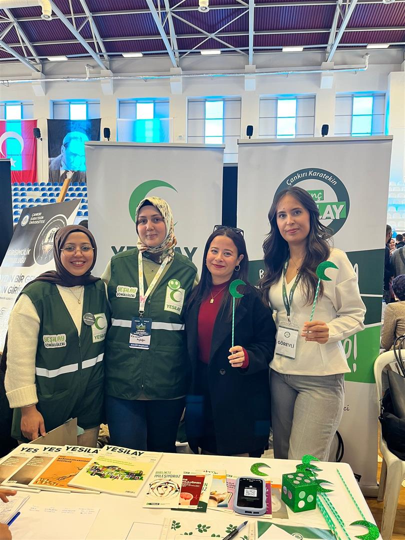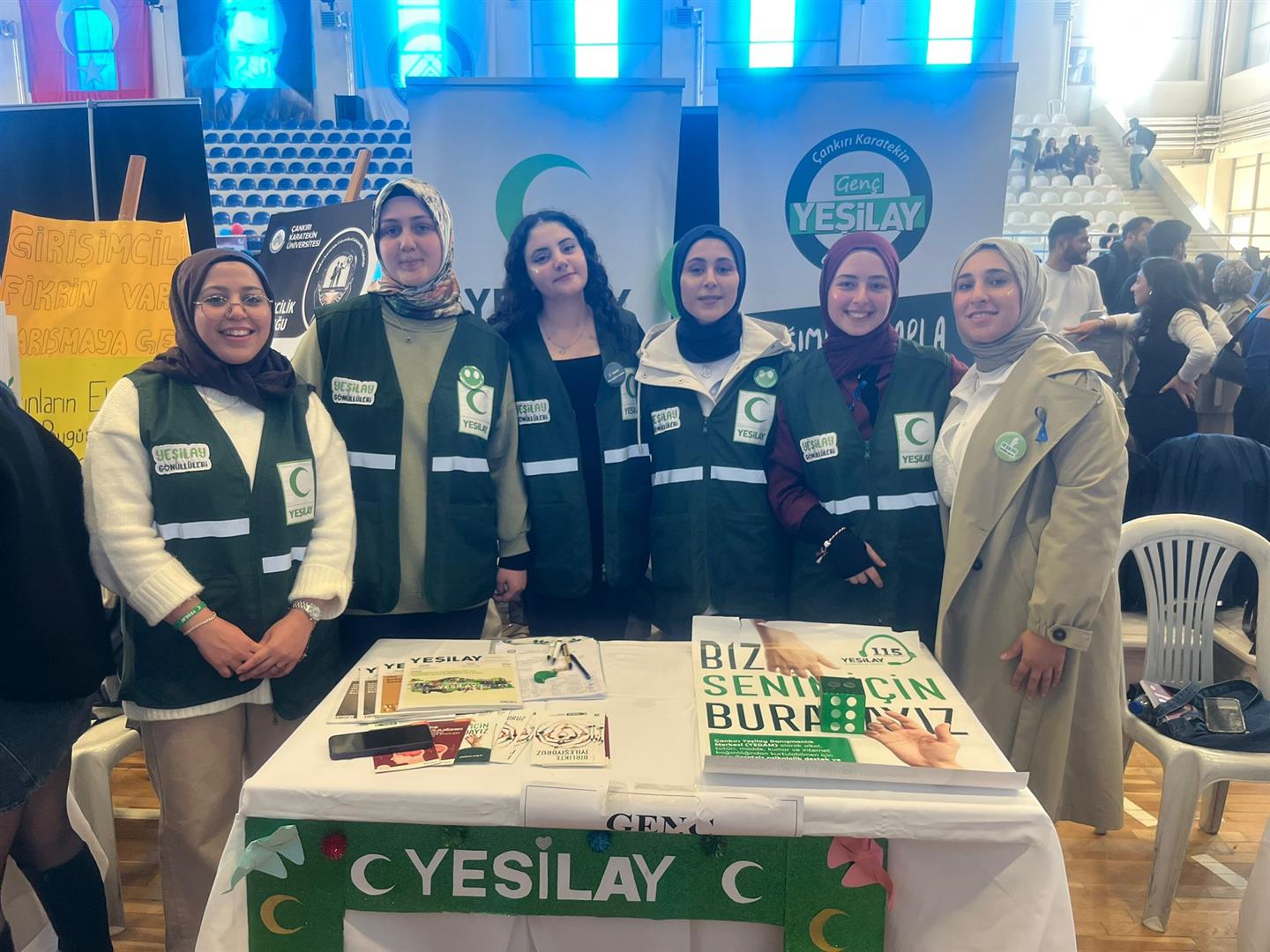 Komisyonumuz üyelerinden Dr. Öğr. Üyesi Hilal ALTUNDAL DURU danışmanlığındaki Genç Yeşilay Topluluğu 14.10.2025 tarahinde Sağlık, Kültür ve Spor Daire Başkanlığı tarafından düzenlenen Topluluk Tanıtım Günlerinde SKS Spor Kompleksinde stand etkinliği gerçekleştirdi. Çankırı Yeşilay Şubesi`nin işbirliğinde gerçekleştirilen etkinlikte Çankırı Yeşilay Şube Başkanı Sayın Öğr. Gör. İsmail ÖZCAN standı ziyaret etti. Yoğun ilgi gören topluluk standında Yeşilay ve topluluk faaliyetleri anlatılarak üye kaydı gerçekleştirildi. Etkinlik sırasında Rektörümüz Sayın Prof. Dr. Mevlüt KARATAŞ ve Sağlık Bilimleri Fakültesi Dekanı Sayın Prof. Dr. Özcan ÖZKAN standı ziyaret ederek onurlandırdı.